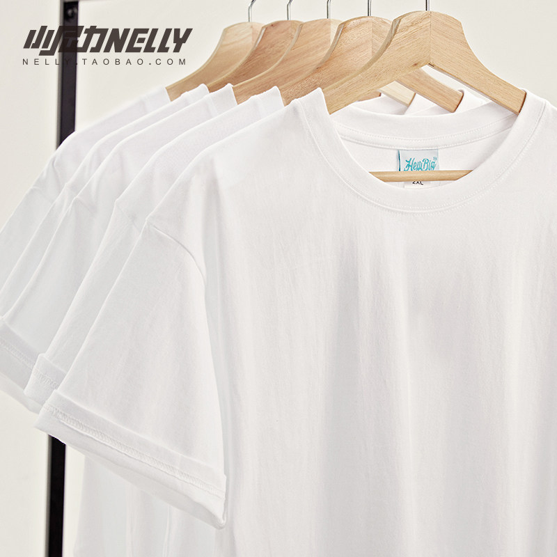 重磅纯色不透纯棉圆领短袖T恤厚实纯白打底衫t男女款体恤上衣男女